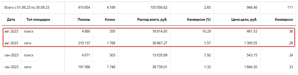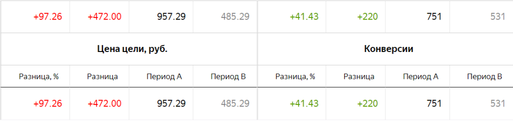 Результативность за анализируемый период в сравнении с другими форматами кампаний (в качестве конверсий – уникальный звонок в Callibri):