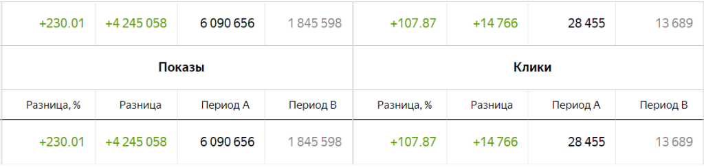Сравнение «До/После» по всем рекламным кампаниям в направлении флебологии (период А – 1 ноября 2022 – 31 августа 2023, период В – 1 января 2022 – 31 октября 2022):